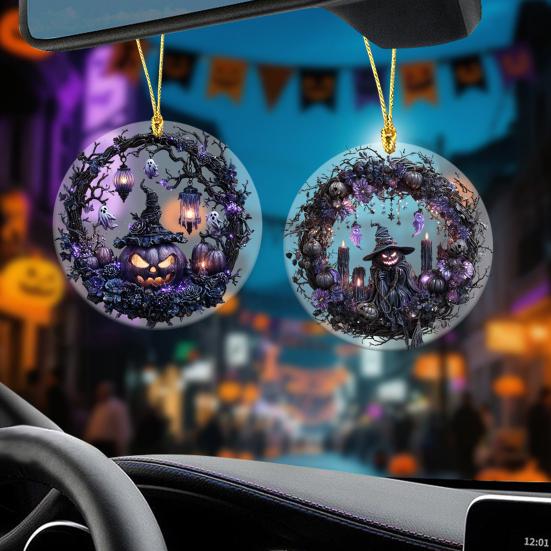 Pumpkin Witch Decoration Halloween Hanging Ornament 2D Flat Acrylic Pendant for Car Interior Rearview Mirror Backpack Key Ring