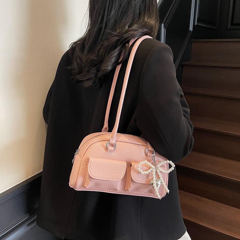 Niche Splicing Shoulder Bag Women's New Bowling Bag Fashionable Retro Versatile Underarm Bag