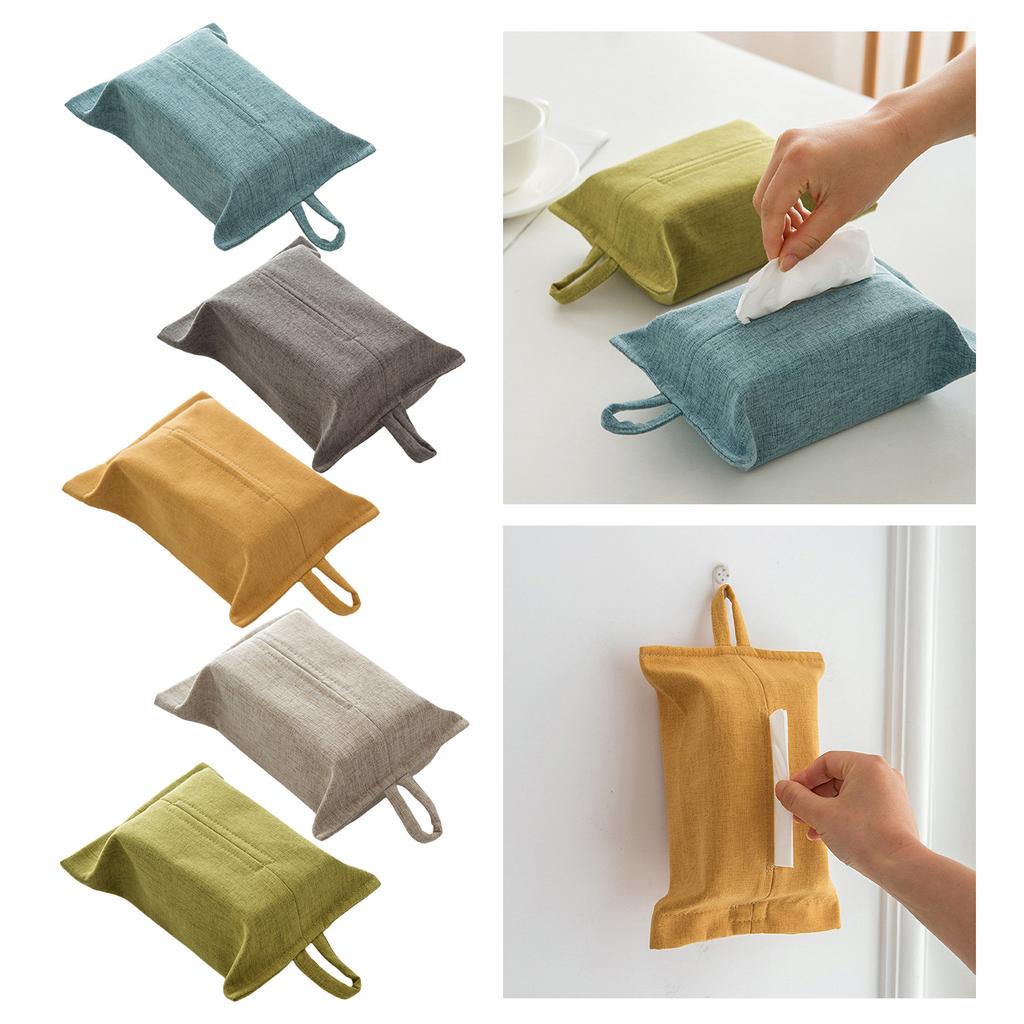 Elegant Fabric Tissue Box Cover with Hanging Rope Wall Mounted Napkin Dispenser Paper Towel Holder for Home and Office