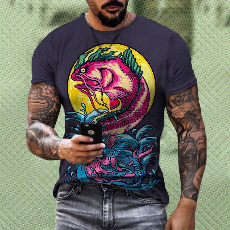 European and American Street Style 3D Printed Personalized Fish Pattern T-shirt Fashionable Casual Men's T-shirt