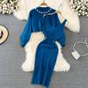 Celebrity Temperament Round Neck Beaded High Waist Short Belly Button Sweater Two-piece Set Spice Girl Knitted Vest Dress