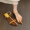Women Fashion Sandals Thin Low Heels Pointed Open Toe Ankle Strap Dress Shoes Solid Color Summer Ladies Thin Low Heels Sandals