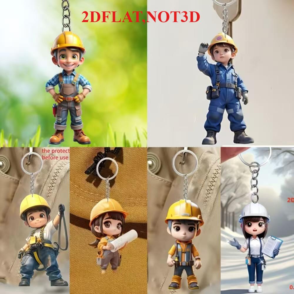Cute Engineer, 2D Flat Acrylic, Pendant, Suitable for Backpack, Keychain, Gifts, Christmas, Halloween