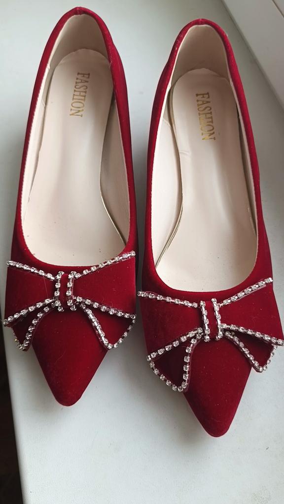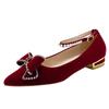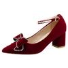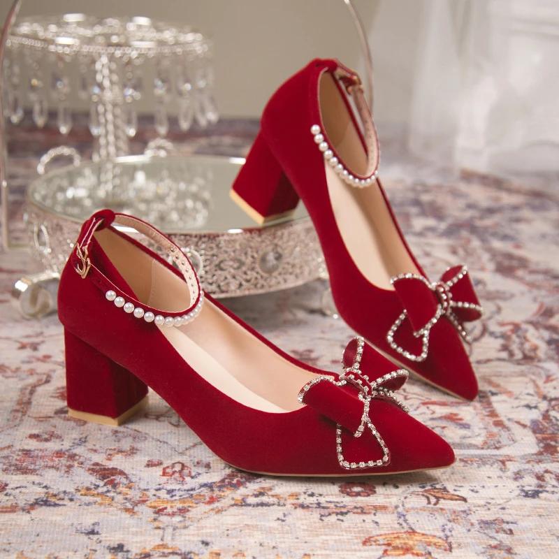 Red Crystal Wedding Pumps Women Pointed Toe Rhinestone Bowtie Bride Shoes for Wedding 2024 Luxury Pearls Ankle Strap Pumps Woman