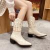 Women's Boots Retro Autumn Winter White Mid Calf Boots Women Comfy Walking Female Western Cowboy Boot Women's Shoes