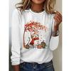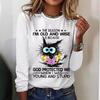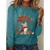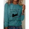 Fun Cat Print Top with Retro Artistic Style Round Neck Long Sleeved Women's T-shirts
