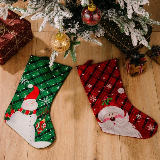Christmas Stocking 18" Large Fireplace Hanging Socks with Santa Snowman Pattern Xmas Candy Bags for Holiday Wall Tree Decor