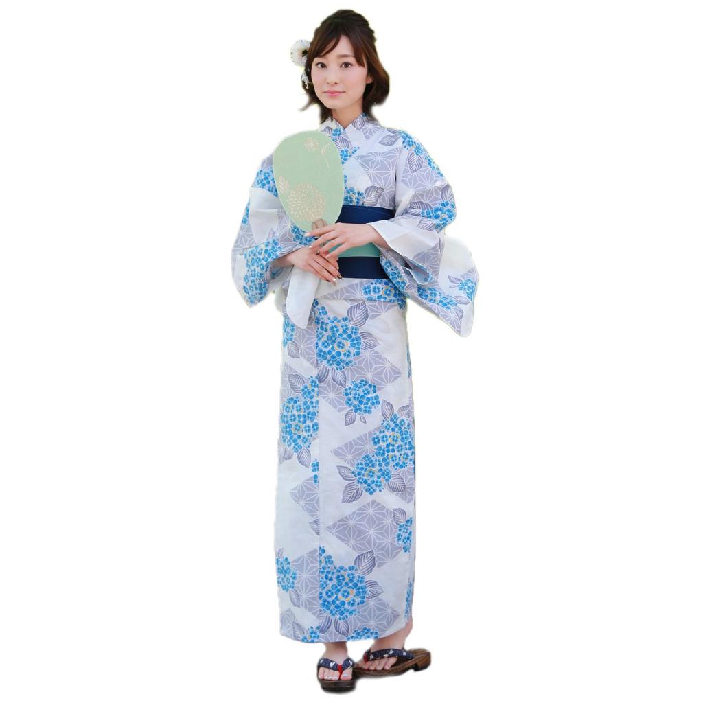 Brilliant Piece Yukata Light Blue Hydrangea and Hemp Leaf On White Lovely Love White Women's Set, Background, 3-Piece Set,
