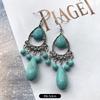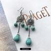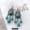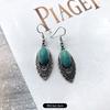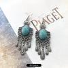 Temperament Retro Turquoise Earrings, Ancient Silver Water Drop Fringed Earrings, Women's Versatile Long Ear Jewelry