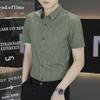 Shirt Short-sleeved Ice Silk Striped Men's Slim Summer New Casual Shirt
