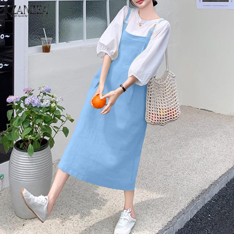 ZANZEA Womens Casual Square Collar Loose Sleeveless Overalls Dress