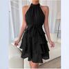 Women Casual Sleeveless Solid Color Bandage Chiffon Tiered Dress