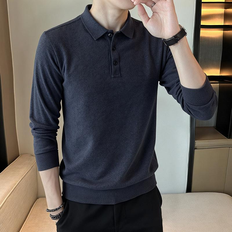 New Men's Polo Shirt Imitation Cashmere Sweater Business Casual Top High-end Base Shirt Middle-aged and Young Jacket