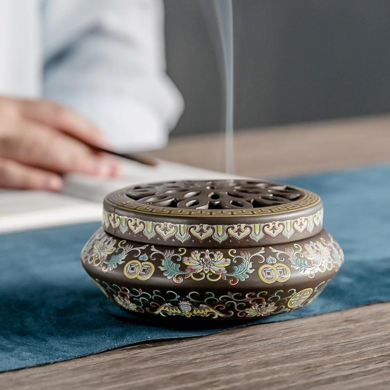 Ceramic Incense Burner Lotus, Dragon Pattern, Cloisonne Handicraft, Colored Enamel