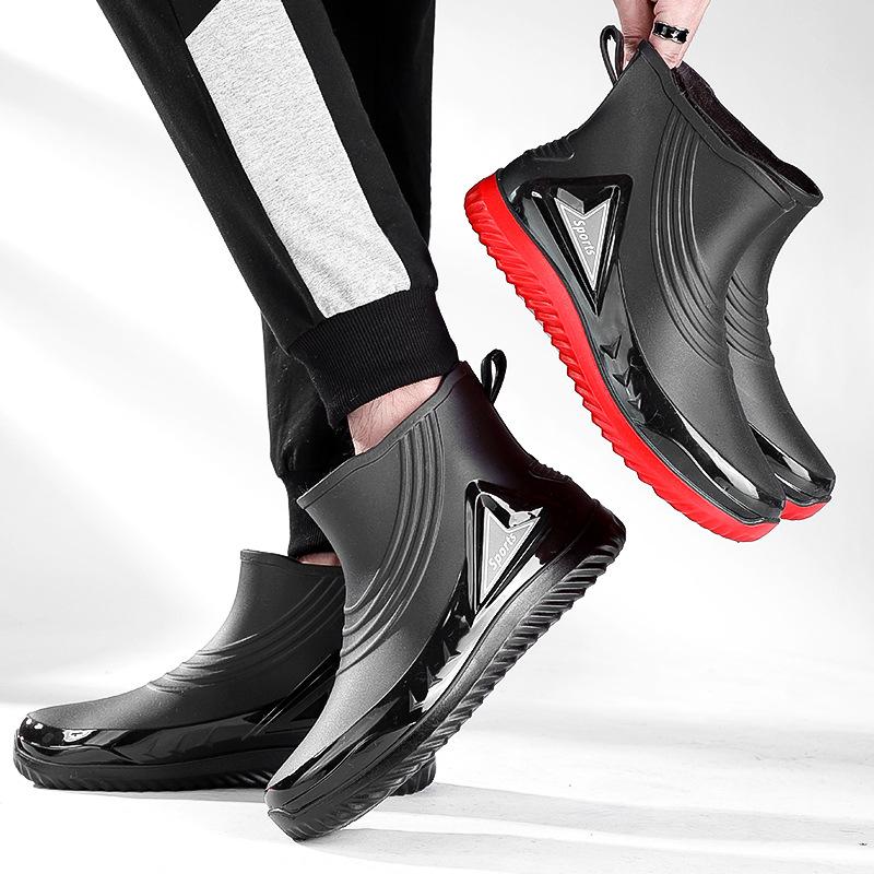 Fashion Water Shoes Men's Short Non-slip Waterproof Shoes New Outdoor Water Boots Lightweight Flat Bottom Warm Short Rubber Shoes Men