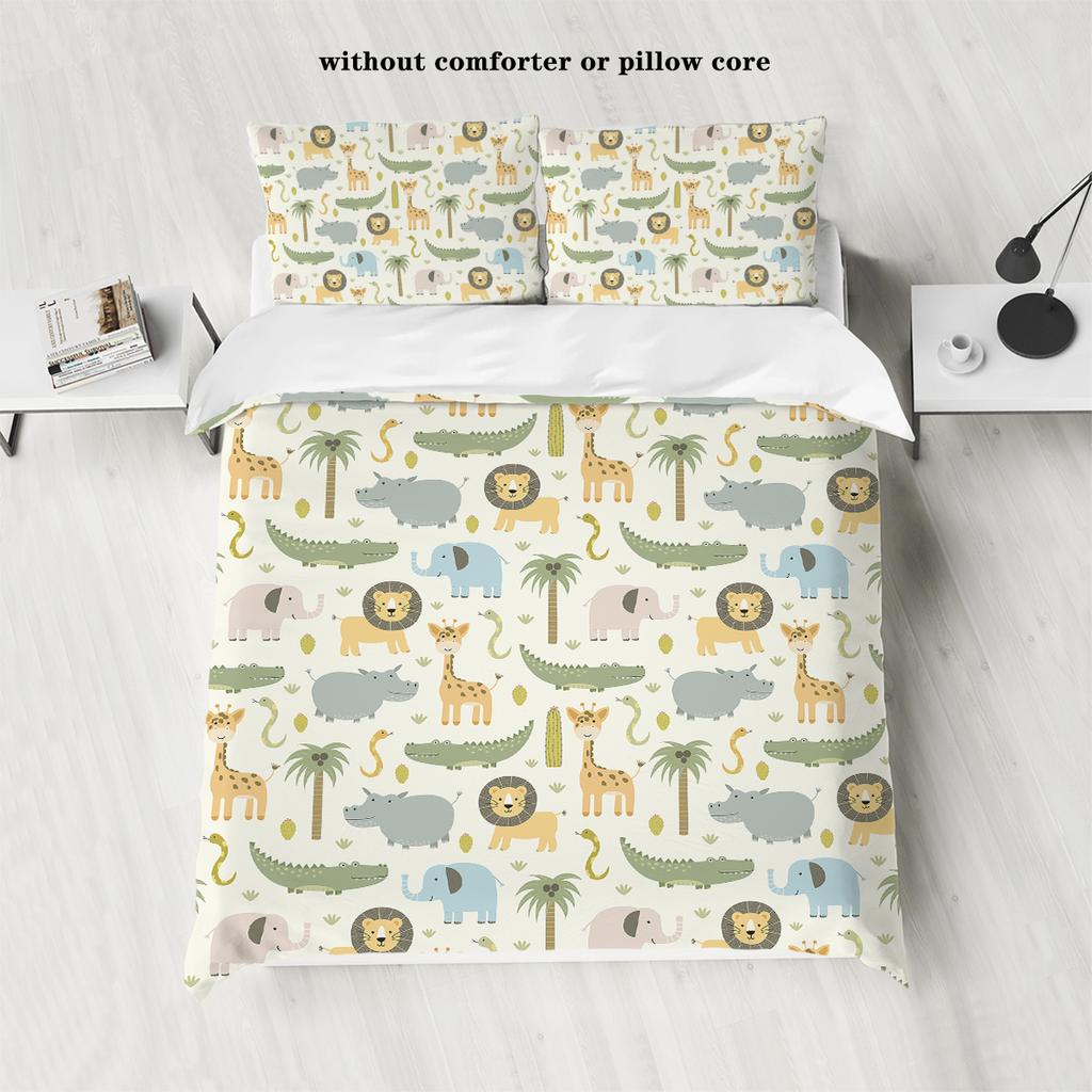 3-piece Down Duvet Cover Set with Cartoon Dinosaur Lion Pattern Print (1 Duvet Cover+2 Pillowcases, No Core) Soft Bedding Set