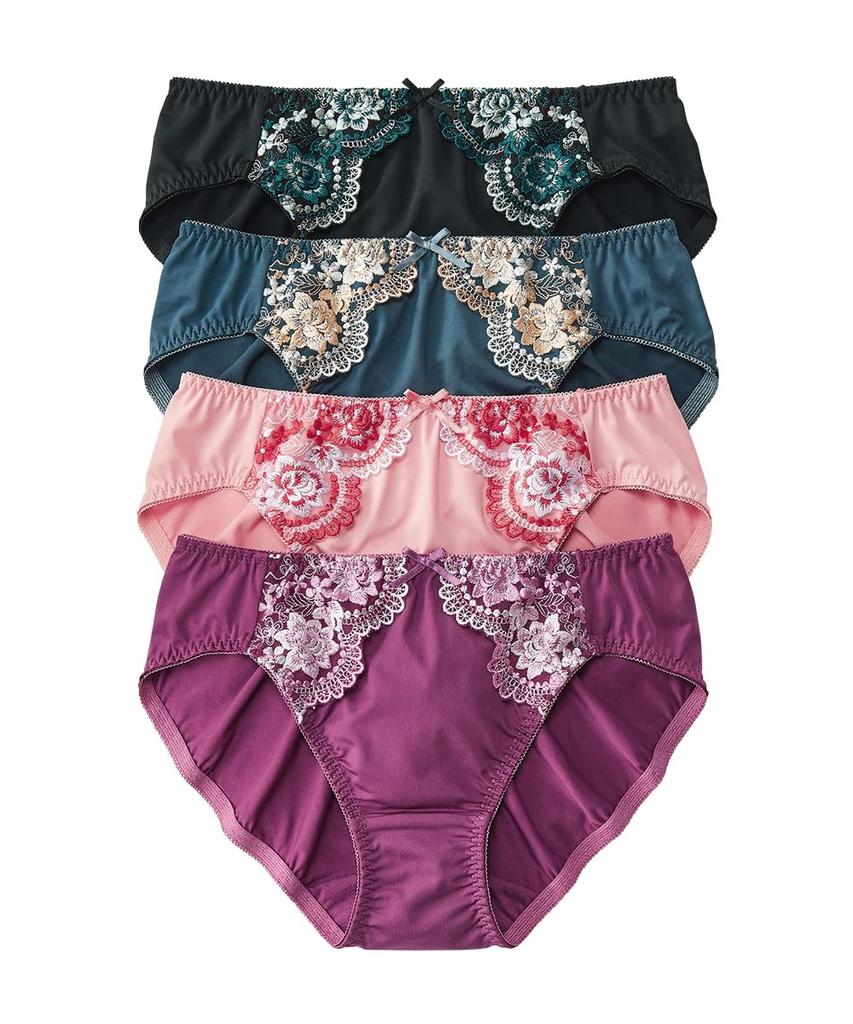 Nissen Set of Pair Shorts and Pants with Floral Size LL Women's 4-Piece Embroidery, (Grace Color)