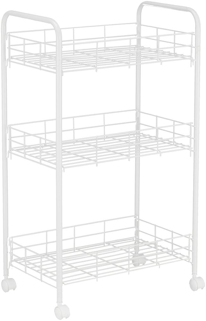 Wahei freiz Storage Rack, 3 Tiers with Casters, White, Multi-Rack, Slim Wagon, Kitchen Cart, Style Lab AMG-0518