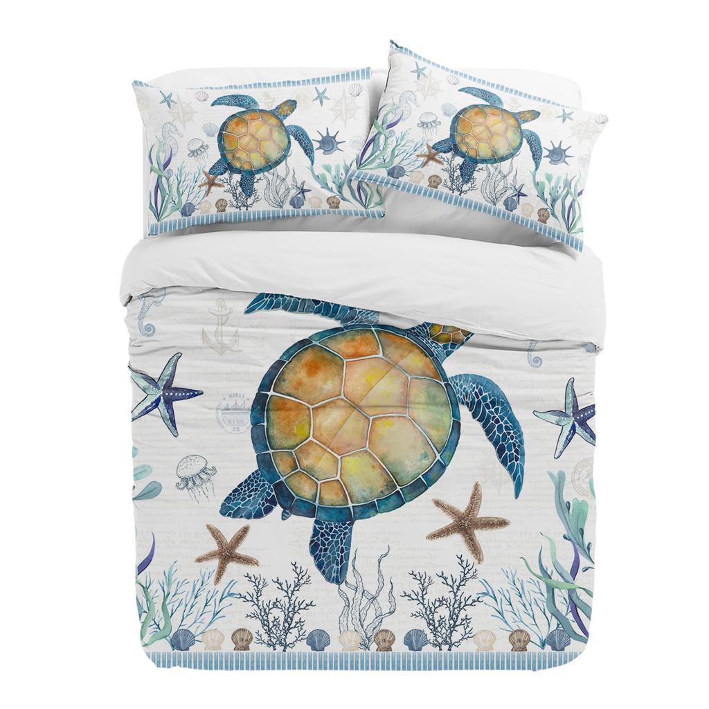 Sea Turtle Blue Starfish Shell Duvet Cover With Pillow Case Custom 3pcs Bedding Set Quilt Cover Double Bed Home Textile