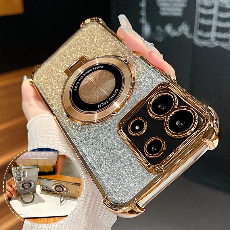 Note13 Plating Magnetic Holder Case On For Xiaomi Redmi Note 13 Pro 4g 5g 13pro 12 Redmi13 13c Silicone Stand Cover Poco X6 M6