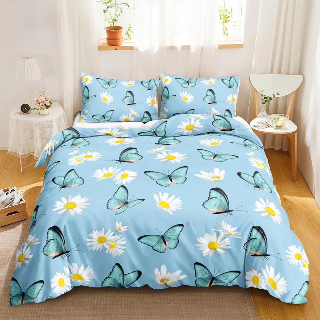 Butterfly Duvet Cover Set Full Size,Rainbow Butterfly Bedding Set For Girls,Rainbow Butterflies Comforter Cover Set,Pink Purple