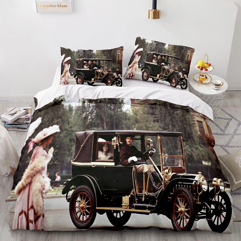 Retro Car Old Car Duvet Cover Set 3D Print King Queen Size Comforter Cover With Pillowcases For Kids Teens Polyester Bedding Set