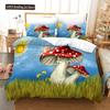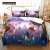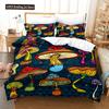 Mushroom Duvet Cover Set King Queen Size Star Purple Blue Trippy Mushroom Pattern Cartoon Polyester Bedding Set For Kid Boy Girl