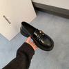 Whole Cowhide~ Loafers Genuine Leather Retro Gold Buckle Thick Sole Thick Heel Loafers Small Leather Shoes Women