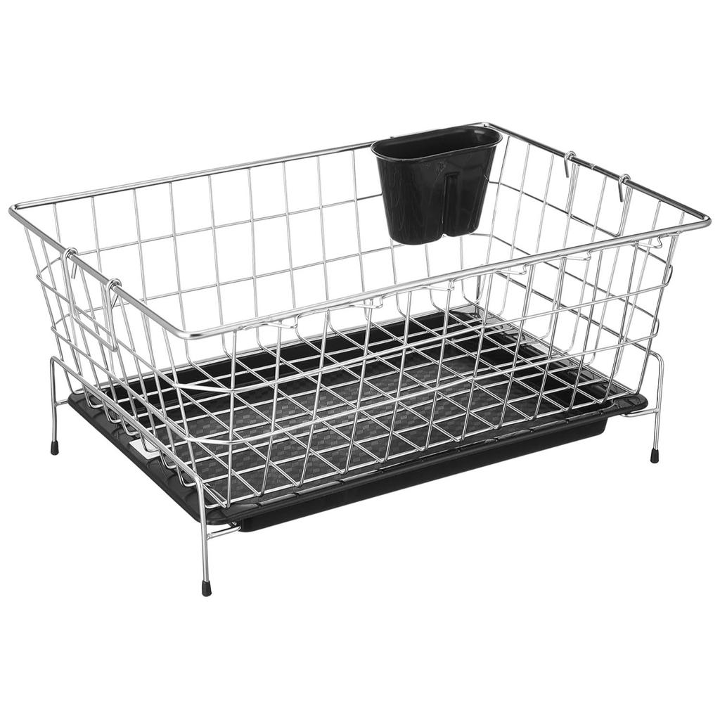 Stainless Steel Dish Drainer with Drain Tray + Cutlery Stand | for Kitchen Utensils | Drying Rack Stand |