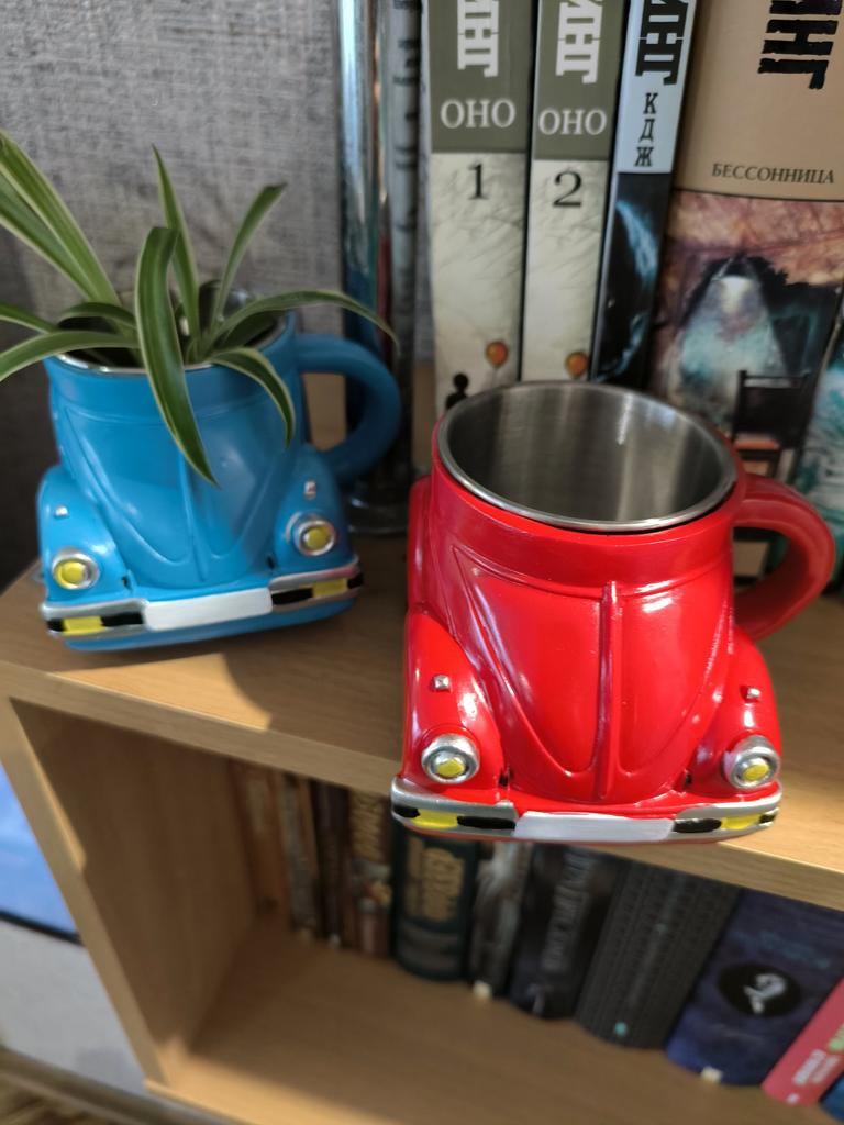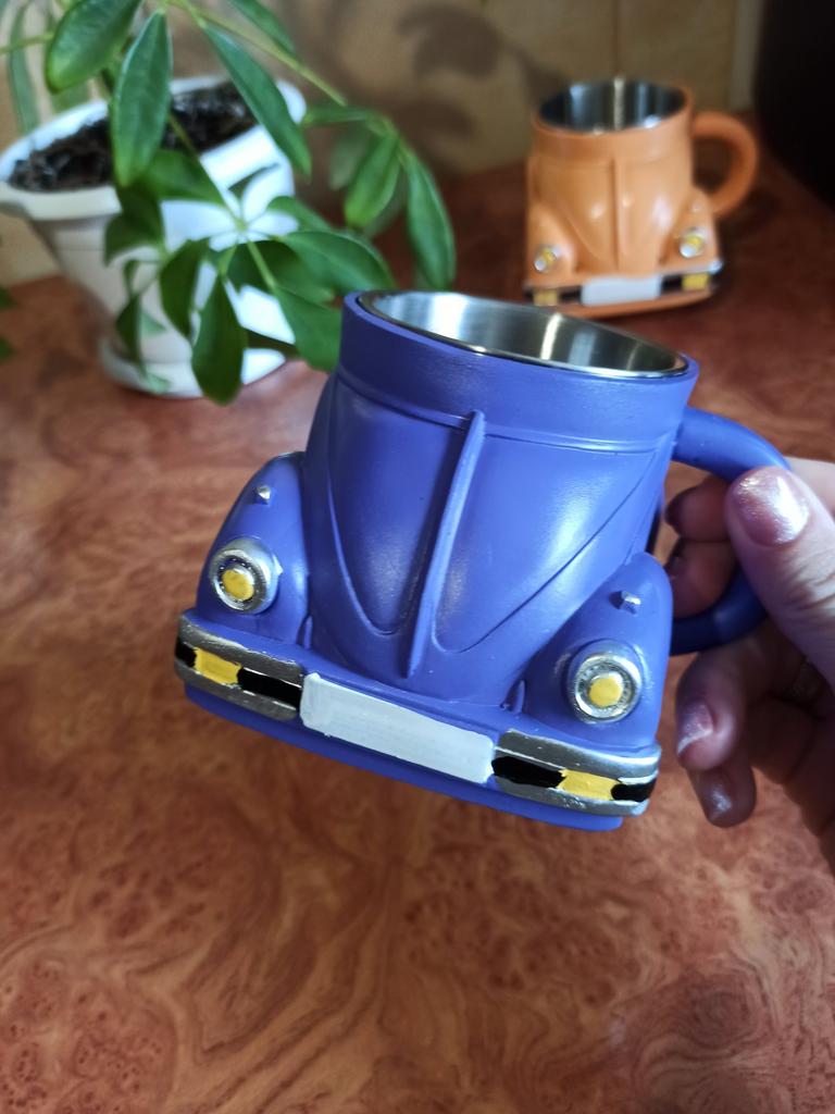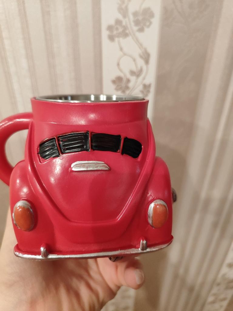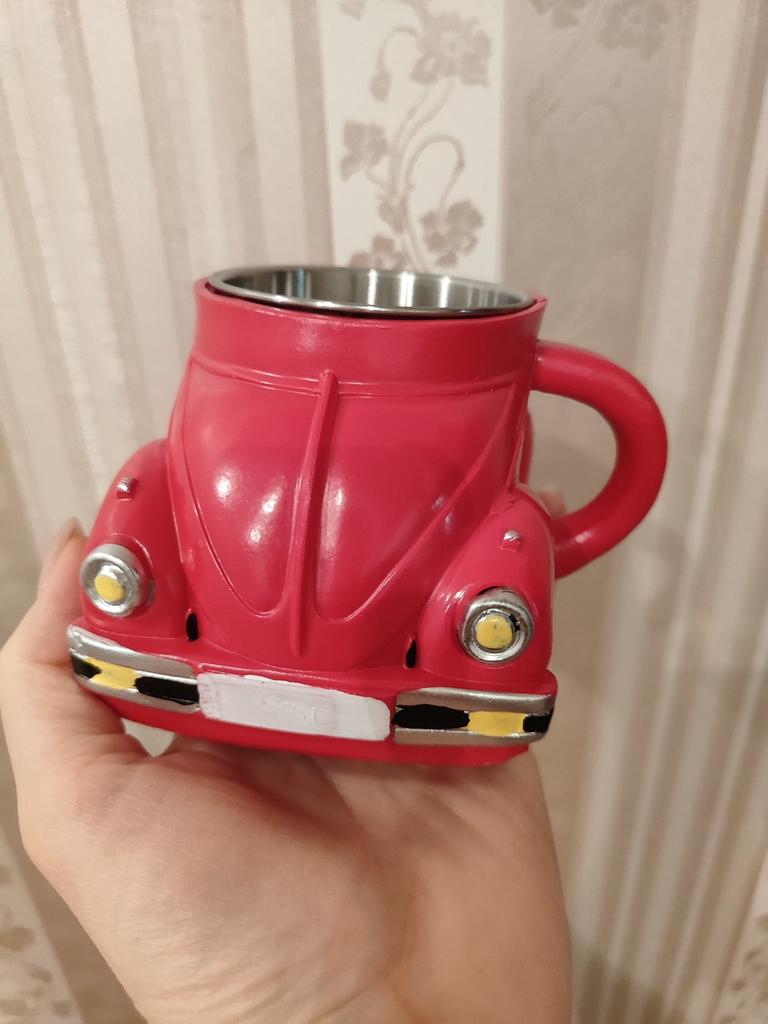 ❤️👍I want to share a review of an unusual cup that immediately caught attention with its original design. It looks like a car. This design will surely appeal to car enthusiasts or simply those who appreciate creative things. The top of the cup is made of plastic, and this is felt to the touch – the surface is smooth, but not too heavy. Due to this, the cup itself is relatively light, despite its massive appearance. The handle is comfortable, fits well in the hand, and it is pleasant to hold.. The inside is made so that it is convenient to pour drinks – the walls are smooth, without unnecessary protrusions. The volume is quite sufficient for a standard portion of tea or coffee.