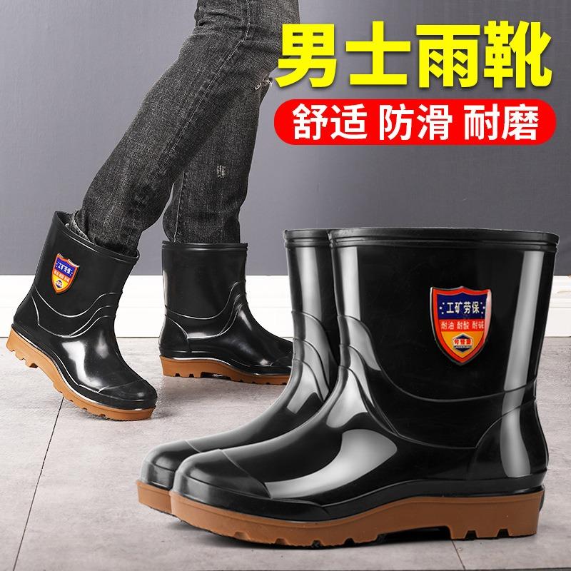 Loudenburg Rain Shoes Medium and Short Tube Black Imitation Rubber Sole Rubber Shoes 20cm Kitchen Non-slip Water Shoes Low Tube Rain Boots Men