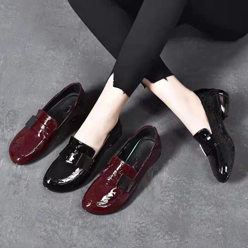Spring New Embossed First Layer Cow Patent Leather Low Heel Deep Mouth Single Shoes Soft Sole Soft Surface Small Leather Shoes