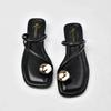 Summer Narrow Band Women Slipper Fashion Metal Decoration Low Heel Slip On Ladies Elegant Slides Casual Outdoor Beach Flip Flop