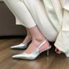 New High Heels White Pumps Women Summer Slingbacks Pointed Toe Party Shoes Woman Solid Thin Heeled Sandals Ladies Sandals