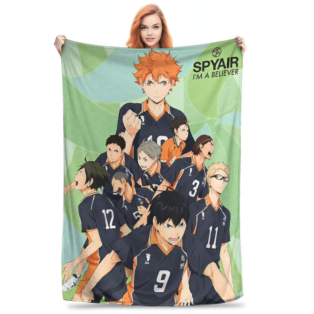 Anime Boy Volleyball Haikyuu Blanket Flannel All Season Breathable Lightweight Thin Throw Blankets for Sofa Office Bedspreads