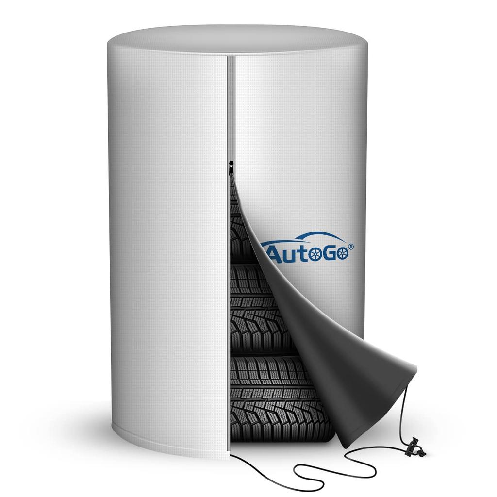 Tire Cover: Includes a drawstring closure and carefully designed: The hem of the tire cover will not flatten by the wind, so it be firmly secured with a single touch of string. The advantage is that it is easy to install without being blown away by the wind. Package: Tire cover x 1 ( store 4 tires), instruction card x 1, storage box x 1. You rest assured that AutoGo tire covers are inspected in 2 stages before leaving the factory and before shipping. If the product is defective, please feel free to contact us. We will try our best to serve you