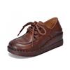 Johnature Genuine Leather Wedges Shoes Versatile Comfortable Soft Soled Lace-up Four Seasons Shoes