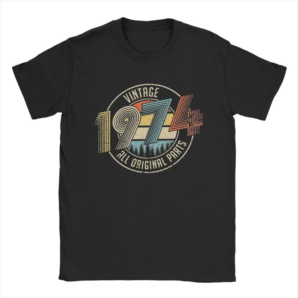 Vintage 1974 All Original Parts T Shirt Men's Cotton Vintage T-Shirts Crewneck 50 Years Old Tees Short Sleeve Clothing Unique