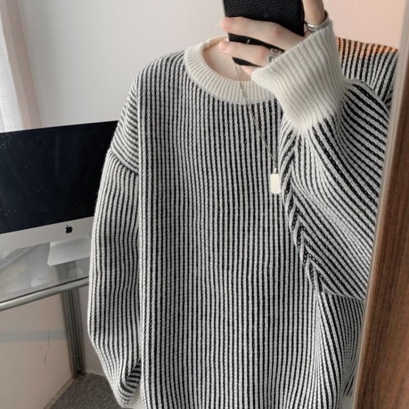 High Street Fashion Stripe Sweater Men Chic Soft and Sticky Autumn Winter Laziness Loose Knitted Casual All-match Pullovers