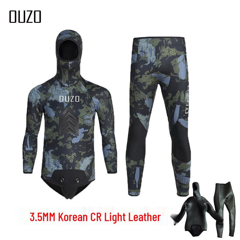 Men's Camouflage 3.5mm Spearfishing Suit - Two-Piece, Thickened, Warm, and Cold-Proof for Winter Diving and Hunting.