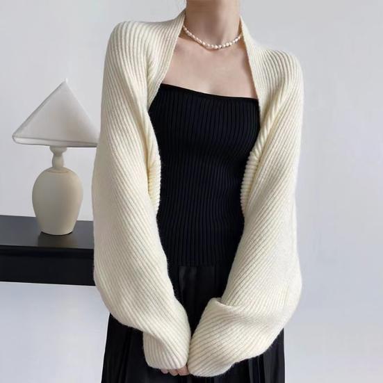 The loose cardigan shawl style features wide bat sleeves, offering a comfortable and fashionable look. Its solid color appearance and loose cutting exude simplicity and fashion-forward style.