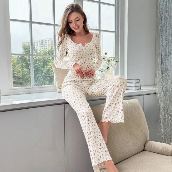 Fashionable Home Attire: Elevate your loungewear with our women's two-piece pajamas featuring a fashionable and classic design that exudes elegance and offers a delicate, soft touch.