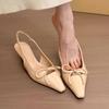 Versatile Womens Sandals with Anti Slip Slim Heel Close Toes Elastic Band Bow 2025 Summer Outdoor PU Black/White Fashion Sandals