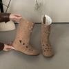 Retro Design Hollow Short Boots Breathable Round Head High Boots Women's Autumn and Summer Fashion Temperament Net Boots Fashion Boots