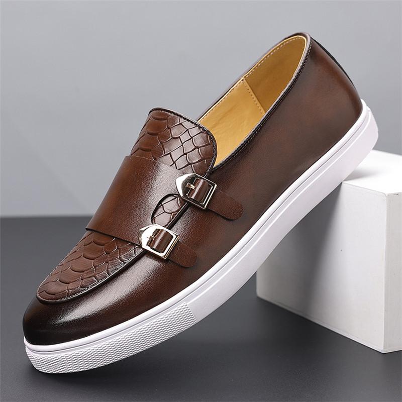 Designer New Men Monk Strap Loafter Men's Black Brown Patent Leather Platform Shoes Male Walking Sneakers Zapatos Hombre