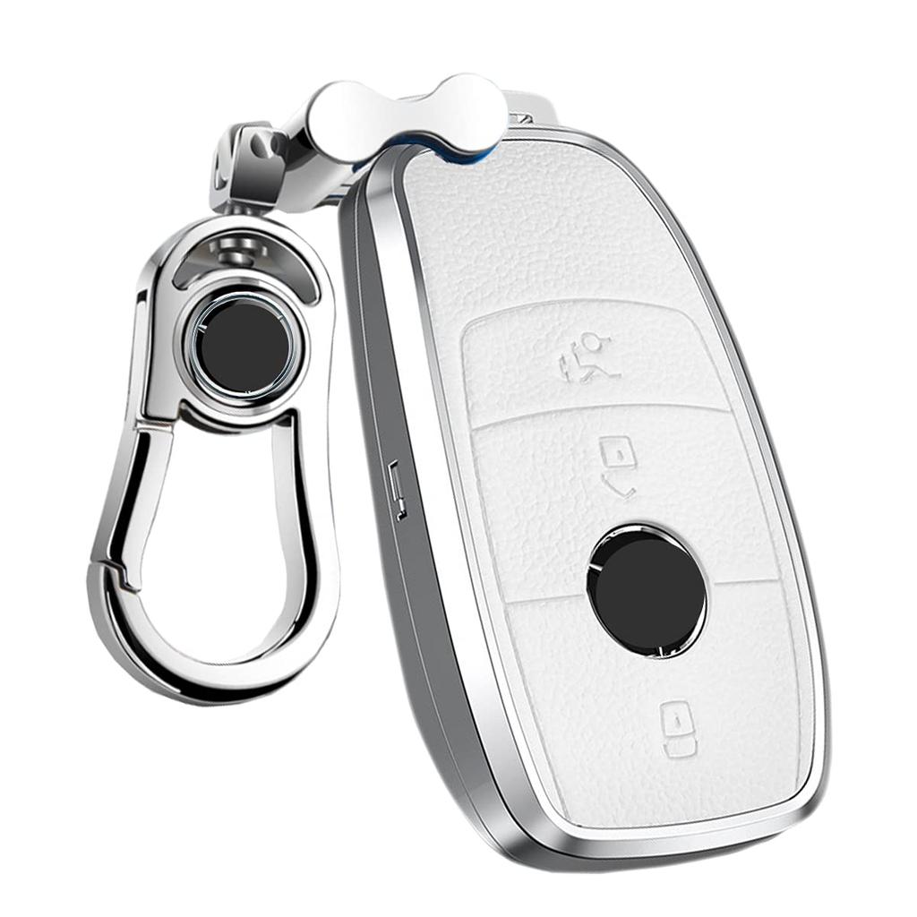 (Premium Cowhide Leather + High Quality Aluminum Alloy Material) The benz key case is made of high quality aluminum alloy material that ensures light weight and durability. Aluminum alloy surface oxidation polishing for better resistance and prevent fading and fading. The high-quality leather gives it a luxurious look. Simply attach this key case to transform your smart key into a luxury car key. In the event that the key is dropped, the key case also protect the key from being damaged, and it has an effect of landing. Protect your original car key Prevents wear and tear, scratches, dirt, and slipping