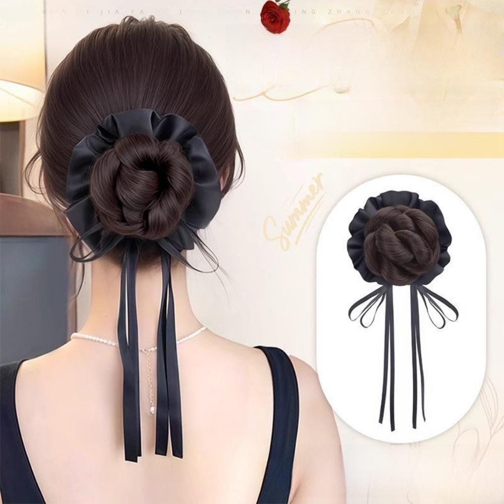 Ribbon Bun Head Wig Bowknot Wig Rubber Band New Hair Bun Claw Clip Hair Accessories