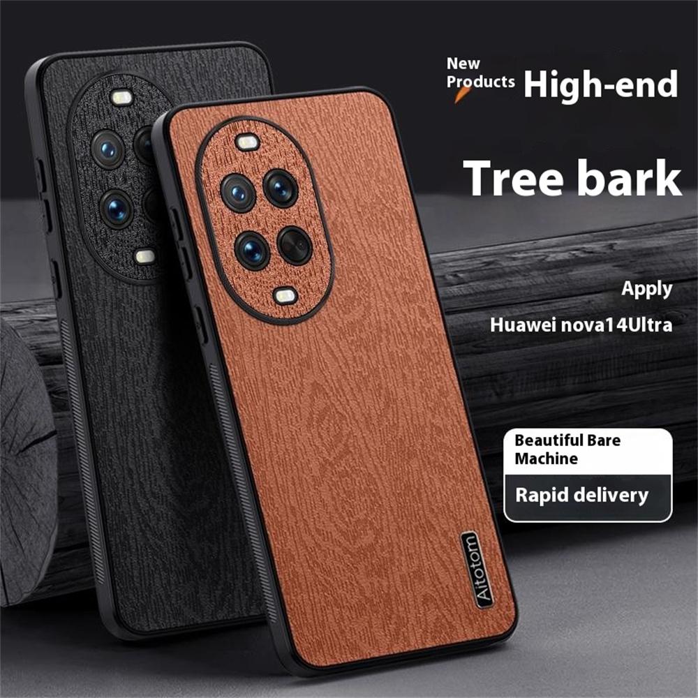 For Huawei Nova 14 Ultra 5G Case Wood Texture PU Leather Coated PC TPU Phone Cover