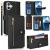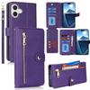 For iPhone 16 Stand Case PU Leather Phone Cover with Straps/Zipper Wallet/Multiple Card Slots