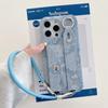 For iPhone 15 Pro Case Card Holder Wristband Lacquered Snake Texture PU+PC Back Cover with Lanyard
